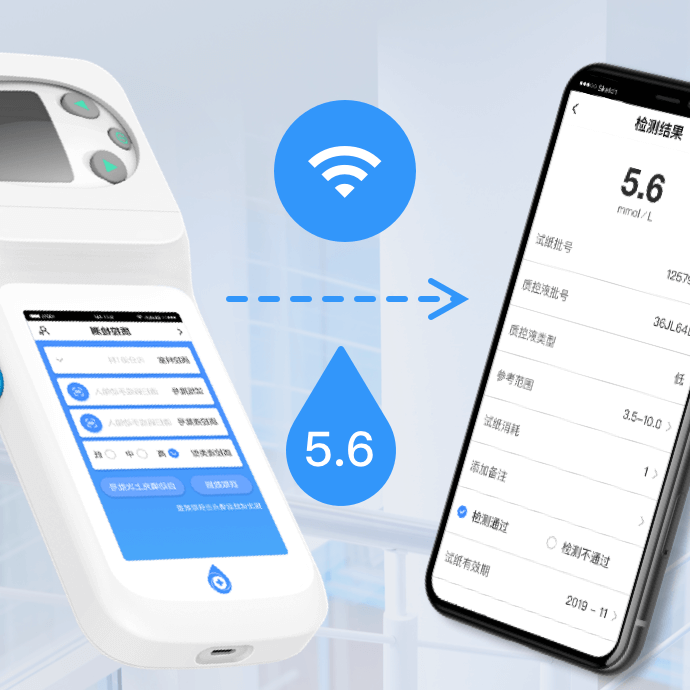 检测结果通过蓝牙、WIFI自动传输至移动端及服务器