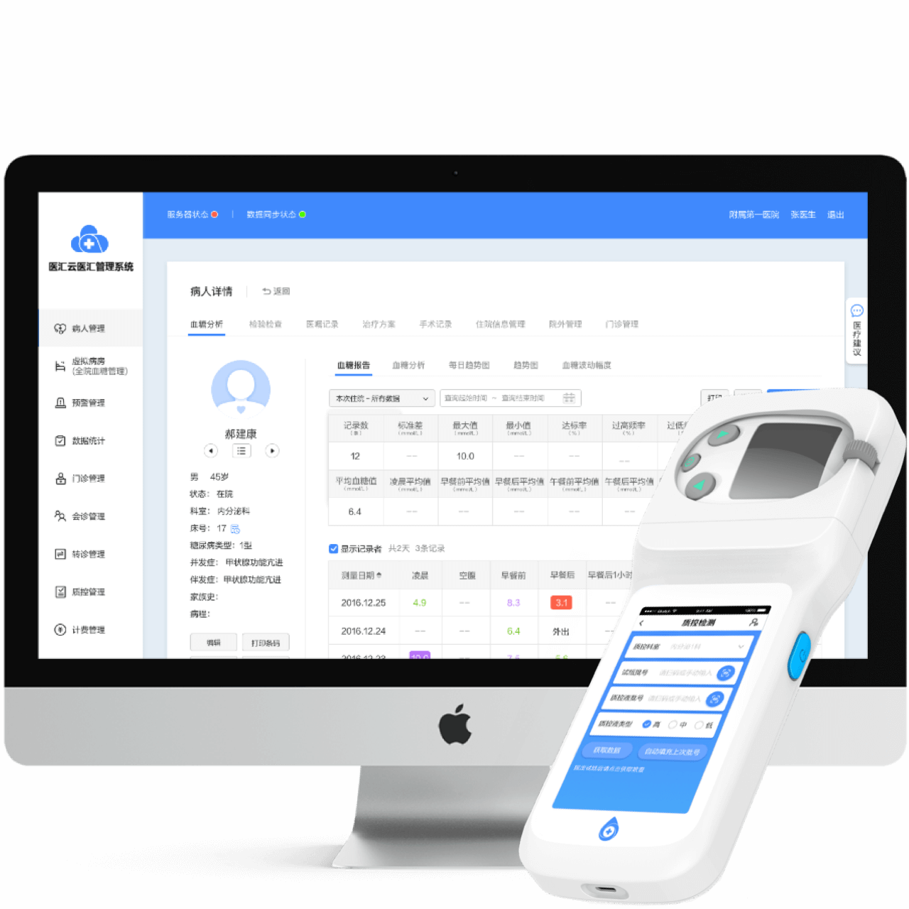 通过对数据的权限分类,院内医护可随时随地查看对应患者的血糖数据